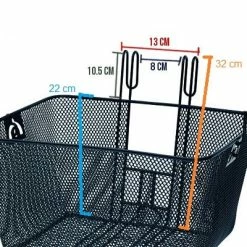 Le panier a les dimensions suivantes : 32 cm de large x 45 cm de long x 37 cm de haut avec la cage. La hauteur du panier sans la cage est de 20,5 cm (25 cm avec la fixation comprise). Il se fixe très simplement grâce à la fixation rapide EasyClick. Elle consiste en deux crochets à ressort (voir photo 3) qui viennent serrer les tubes du porte bagages. Elle est compatible avec des porte-bagages de largeur comprise entre 14 cm et 19 cm et des tubes de 5 mm à 15 mm de diamètre. Attention, pour les personnes qui ont un vélo électrique avec batterie sous le porte-bagages, la fixation prend un espace de 3 mm minimum et 8 mm maximum.