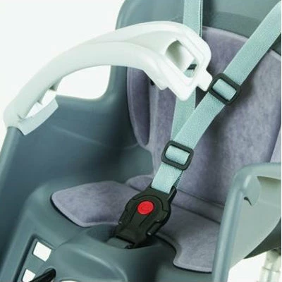 Le siège bébé pour vélo est muni d’une barre de maintien ainsi que de repose-pieds réglables. Pour plus de confort, le siège est recouvert d’un coussin lavable*. Le porte bébé est pourvu d’un harnais de sécurité avec 3 points de fixation. Il peut accueillir un bébé de 9 à 15 kg.